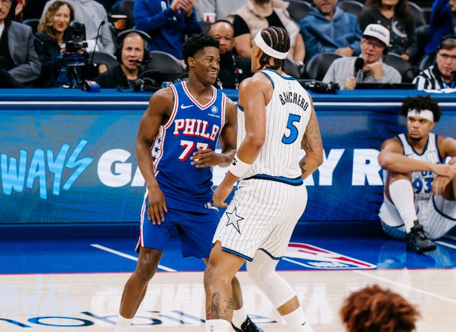 可以简单理解成,从薪资层面,乔治回归后一定锁定三号位首发,场均25分的输出才能匹配他的薪资水准。但过去几个赛季他饱受伤病困扰,他的状态就像是比尔一样,不可逆也回不去了。另一方面,从位置角度,76人后场双枪锁定马克西+埃奇库姆,乌布雷+格莱姆斯+沃特福德,都能很好胜任三号位,就拿乌布雷来说,场均18.6分+51%+38%的两项命中率,他薪资只有840万;格莱姆斯拿着资质报价,作为一名替补,都能贡献场均17.2分4.4助攻的数据。而且76人后场双枪,和这几位锋线都极其适配,能打快节奏,能拉开空间,都能换防。