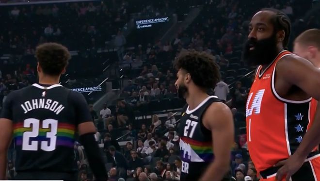 首节结束,掘金39-35领先,约基奇11中8单节狂轰25分,哈登打满首节6中4得到12分。