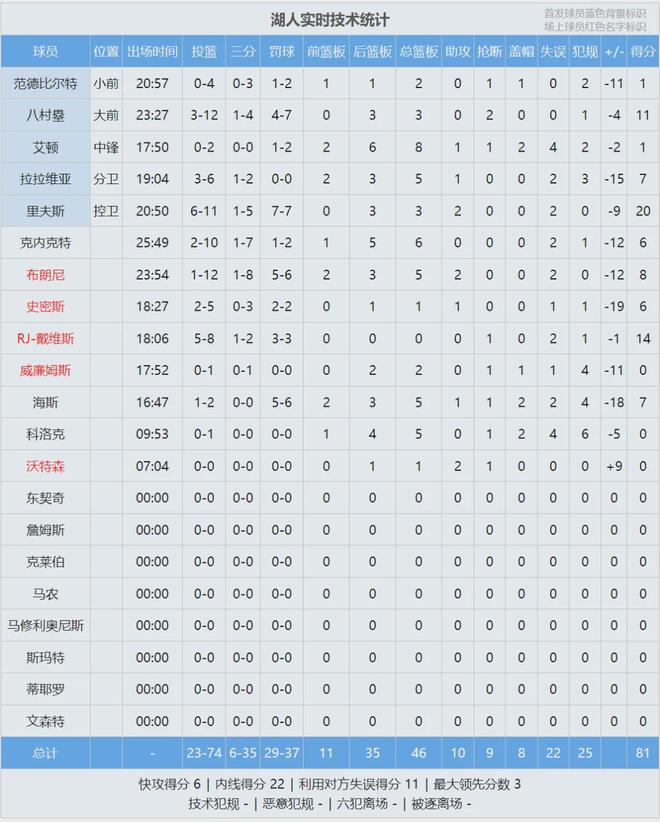 - 湖人今日比赛