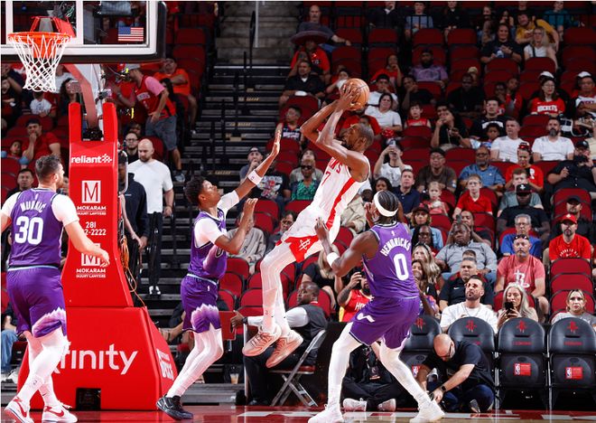 火箭:杜兰特首秀20分,史密斯3记三分18分,阿门19分7篮板6助攻,申京13分5篮板13助攻4抢断,谢泼德11分,霍勒迪3记三分11分。